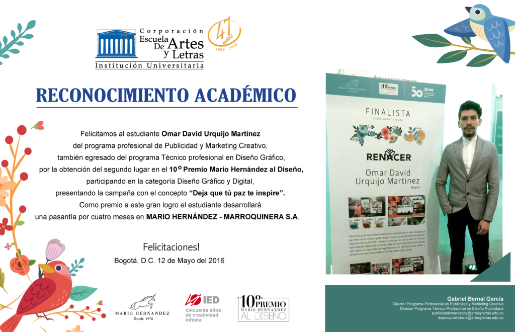 La participación activa y permanente del Programa de Publicidad y Mercadeo de la Escuela de Artes y Letras en eventos, concursos y festivales de la industria publicitaria y del marketing, han permitido obtener logros y reconocimientos significativos a nivel nacional e internacional por parte de nuestros estudiantes, egresados y docentes.