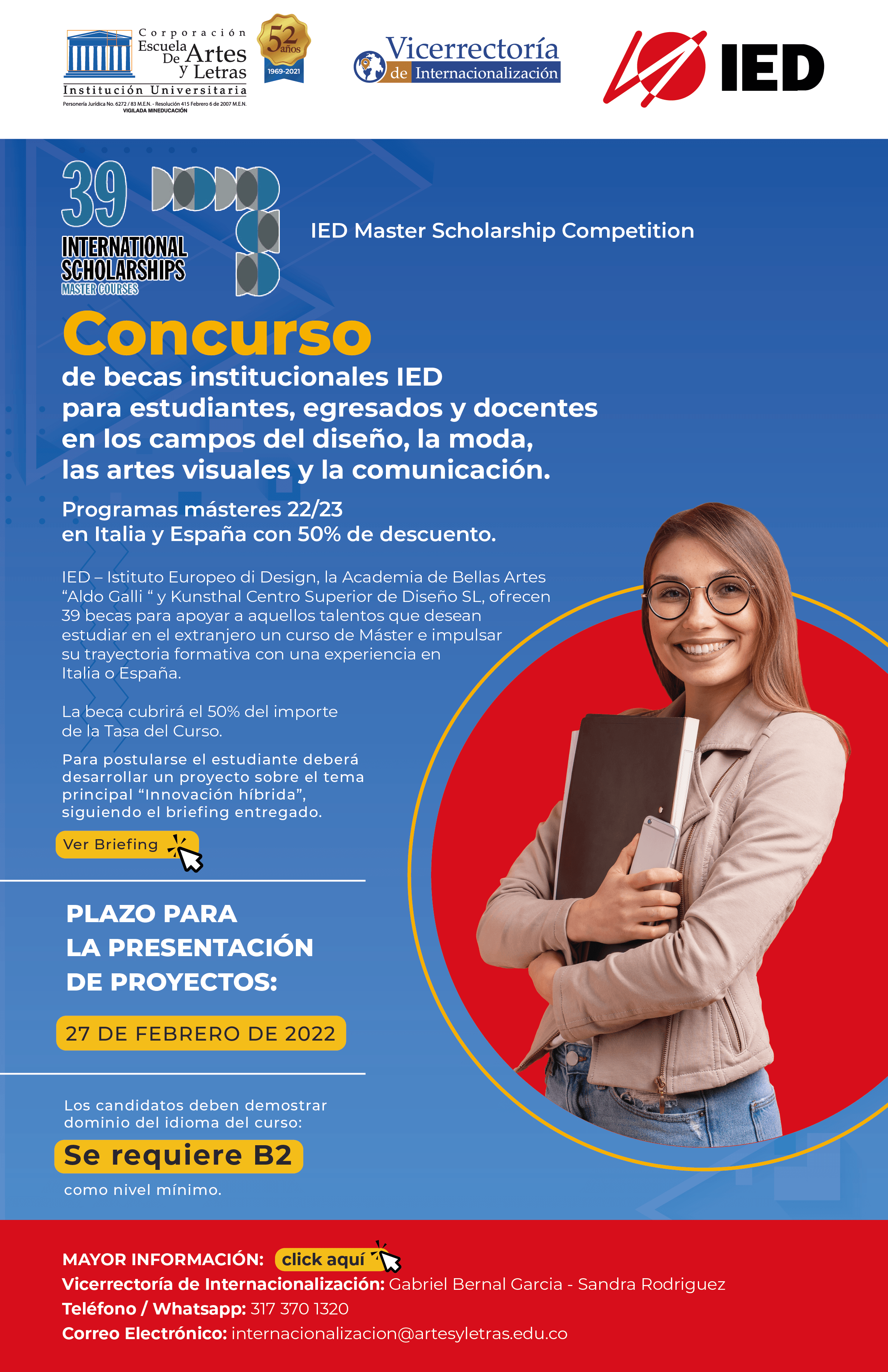 - Ser estudiante activo de la Escuela de Artes y Letras Institución Universitaria.