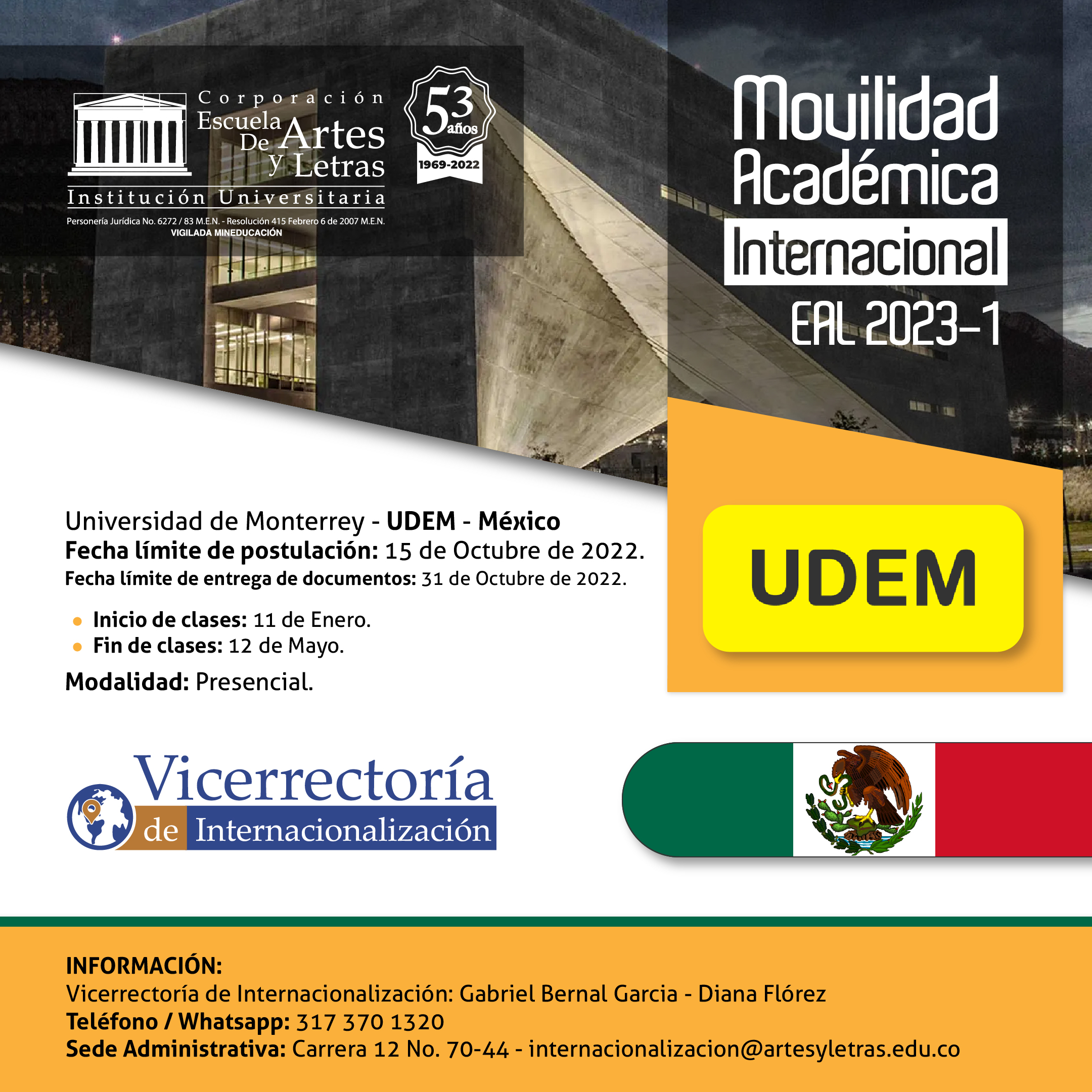 La Escuela de Artes y Letras postulará a los estudiantes aceptados en las diferentes entidades o instituciones que otorguen becas o financiamiento para realizar la movilidad académica.