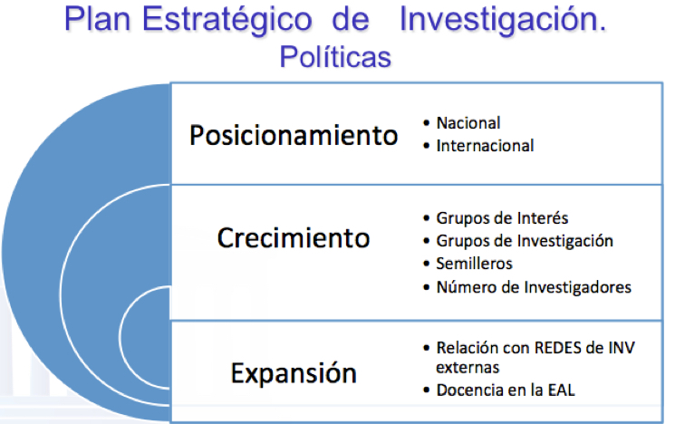 La Corporación Escuela de Artes y Letras Institución Universitaria cuenta con un plan estratégico de investigación que acompaña el plan institucional de desarrollo entendiendo la importancia del posicionamiento nacional e internacional como gestores y productores del conocimiento.